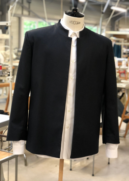 Présentation : Uni, sans fantaisie, coupe droite, col officier, poche intérieure plaquée