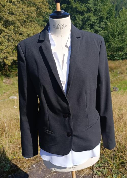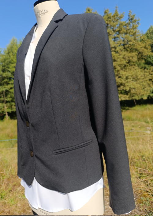Présentation : Veste de costume homme, 2 poches passepoilées avec rabat, 1 poche poitrine côté cœur, 3 poches intérieures, hauteur 75 cm