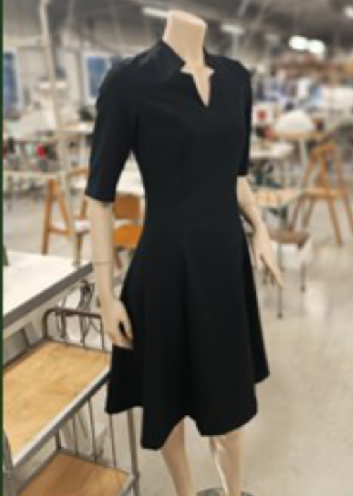 Présentation : Unie, col fantaisie en V, coupe patineuse, manches ¾,